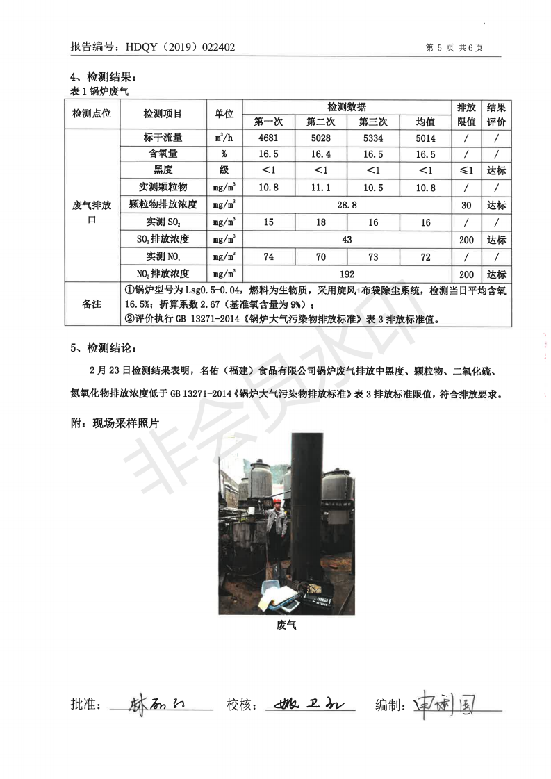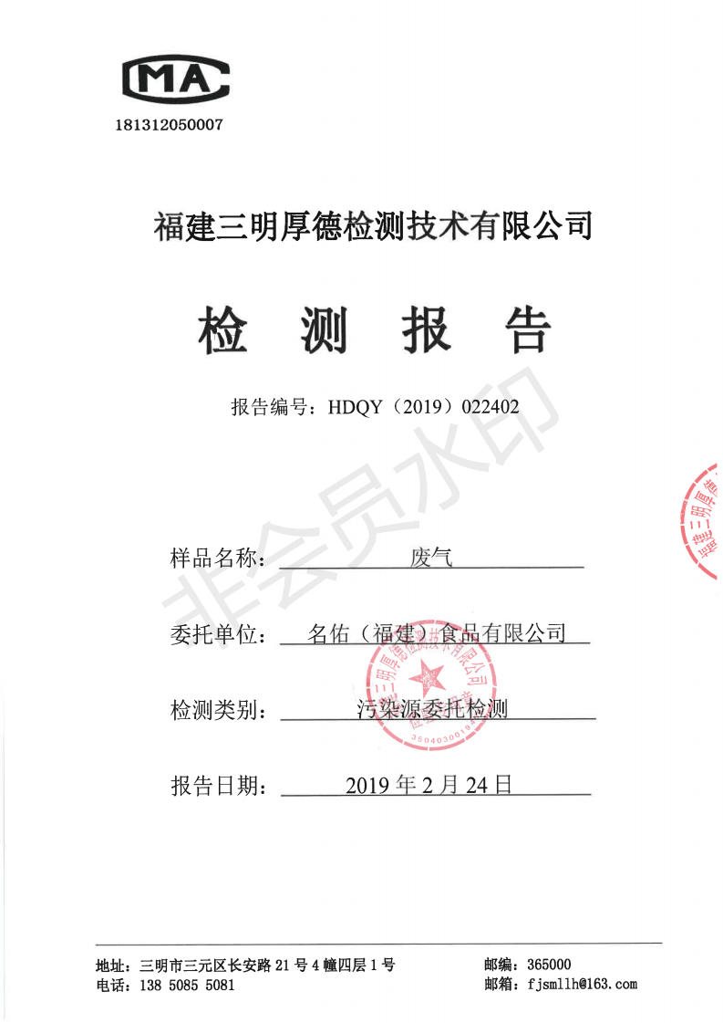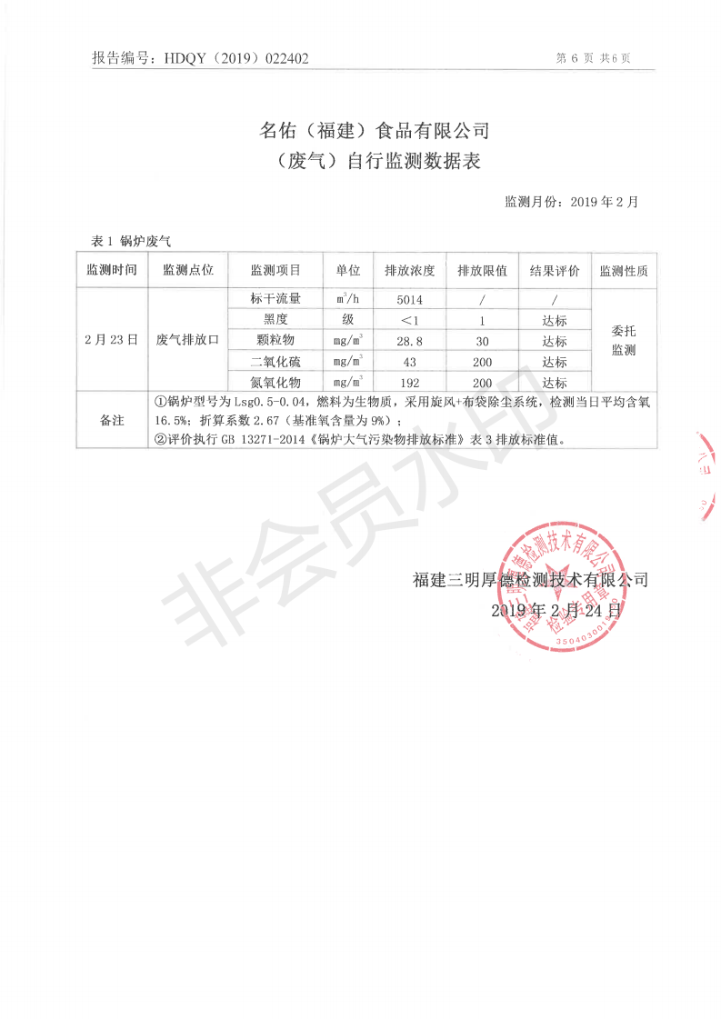 名佑(福建)食品有限公司2019年度2月環(huán)境自行監(jiān)測信息